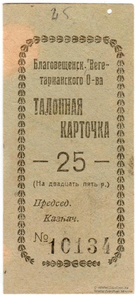 Талонная карточка без даты. Благовещенское Вегетарианское Общество.