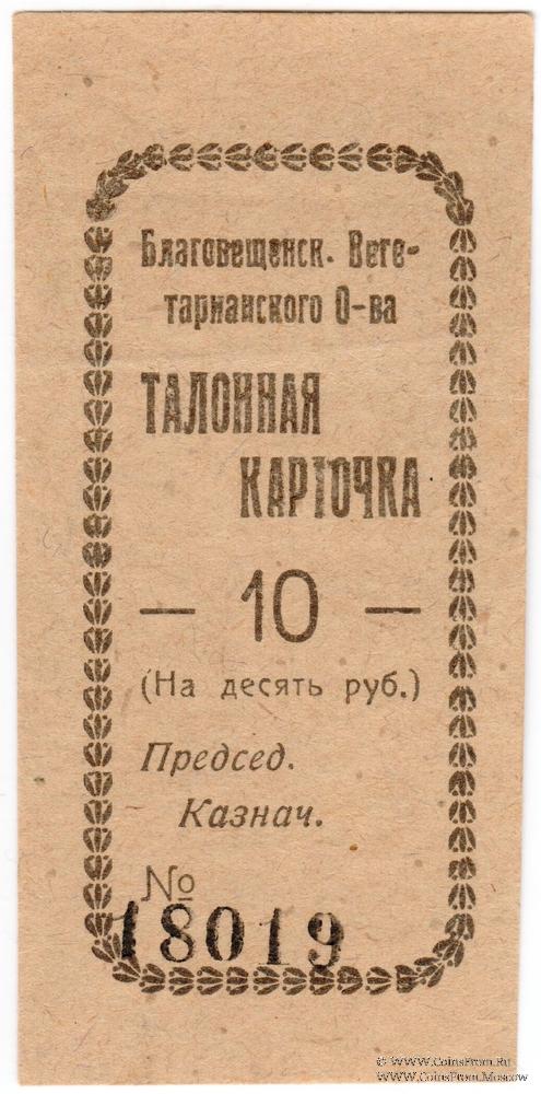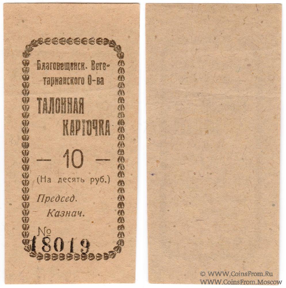 Талонная карточка без даты. Благовещенское Вегетарианское Общество.