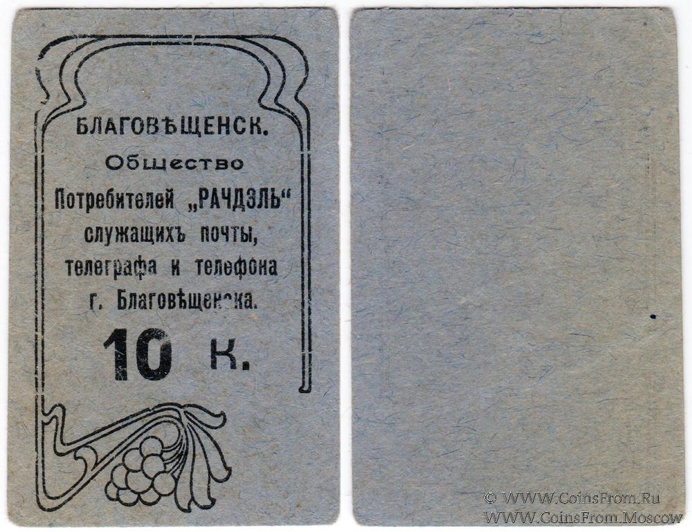 Синий. Общество Потребителей "Рачдэль" служащих почты, телеграфа и телефона г. Благовещенска.