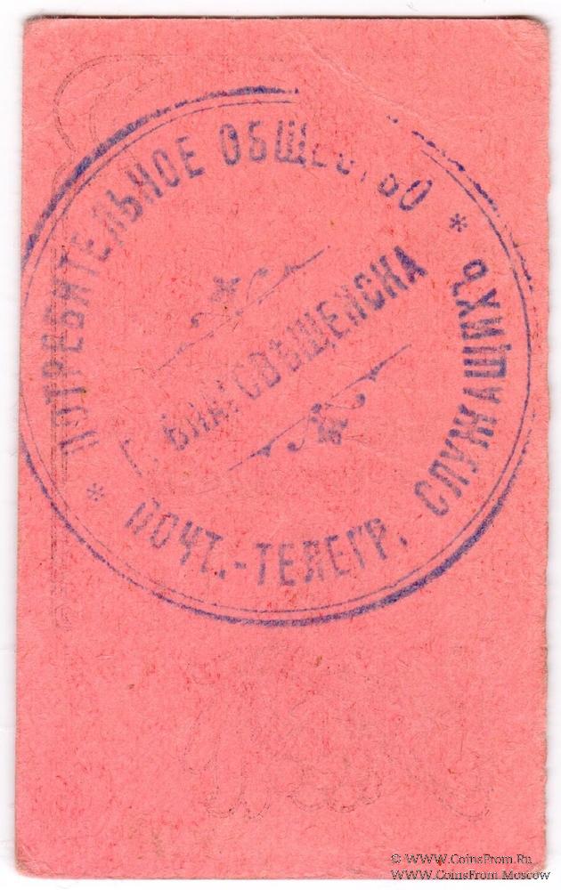 Печать на реверсе. Общество Потребителей "Рачдэль" служащих почты, телеграфа и телефона г. Благовещенска.
