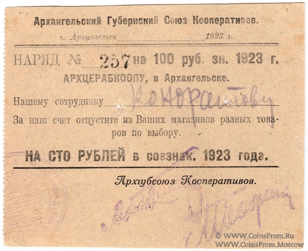 Выпуск 4. Наряд АРХЦЕРАБКООПУ 1923 г. Серо-желтая бумага. Архангельский Губернский Союз Кооперативов (АРХГУБСОЮЗ).