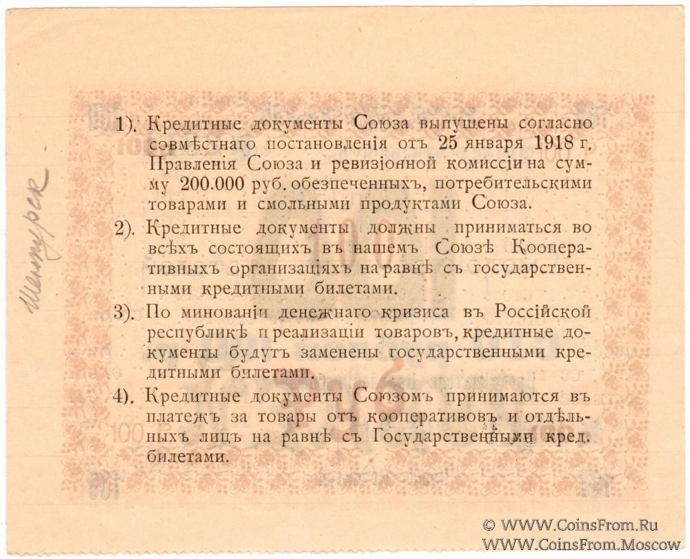 Кредитный документ 1918г. Союз смолокуренных артелей Важской области.