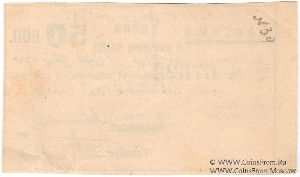 Талон к именному ордеру. Горизонтальный формат. На аверсе штамп красного цвета "НЕДЕЙСТВИТЕЛЕНЪ". Центральный рабочий кооператив "Баксоюз".