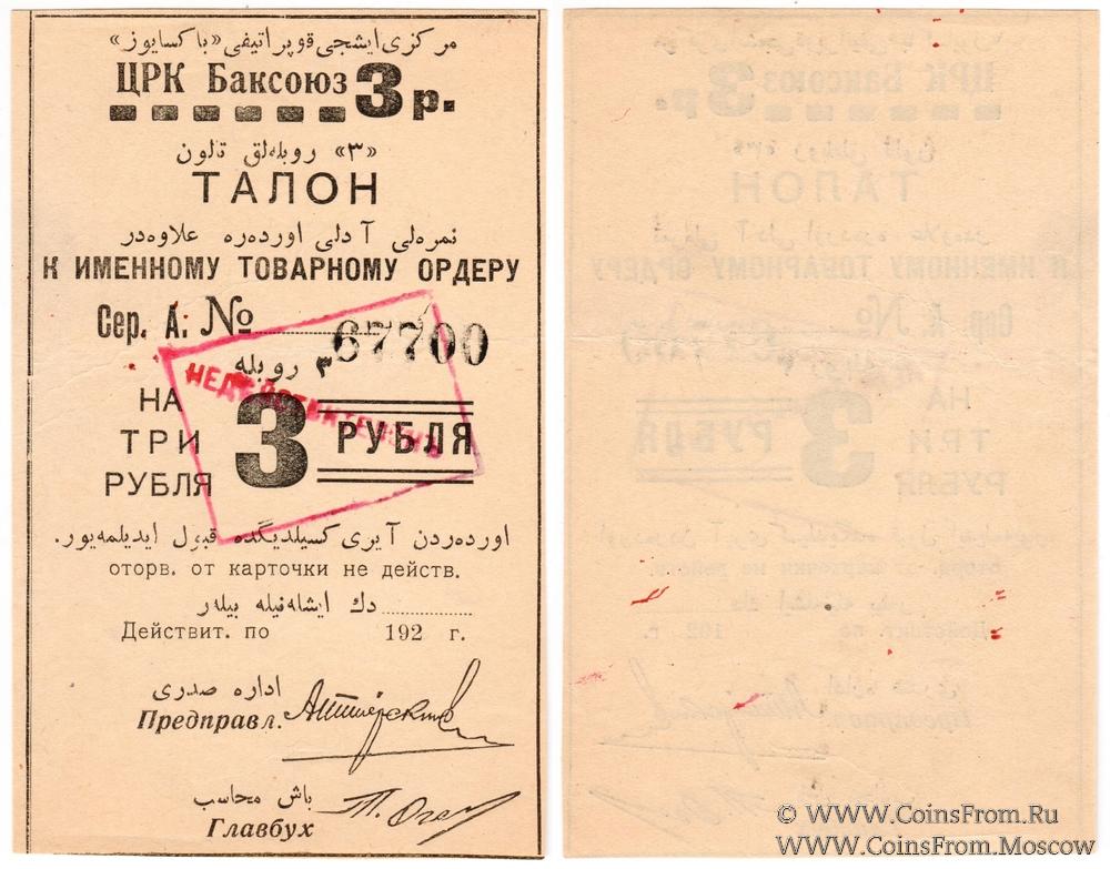 3 рубля 1920 г. (Баку)