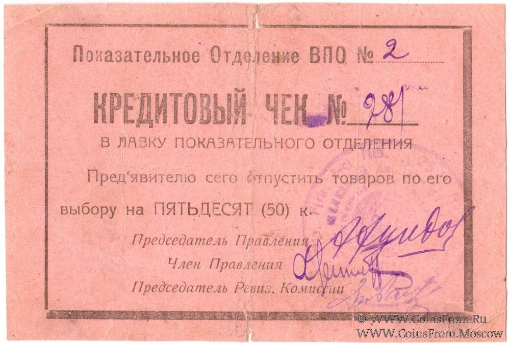 Прямогульный штамп (на реверсе): "ПОКАЗАТЕЛЬНЫЙ / КООП №2 / З.В.П.О. / при 1-ом П. Аз. ДИВ."