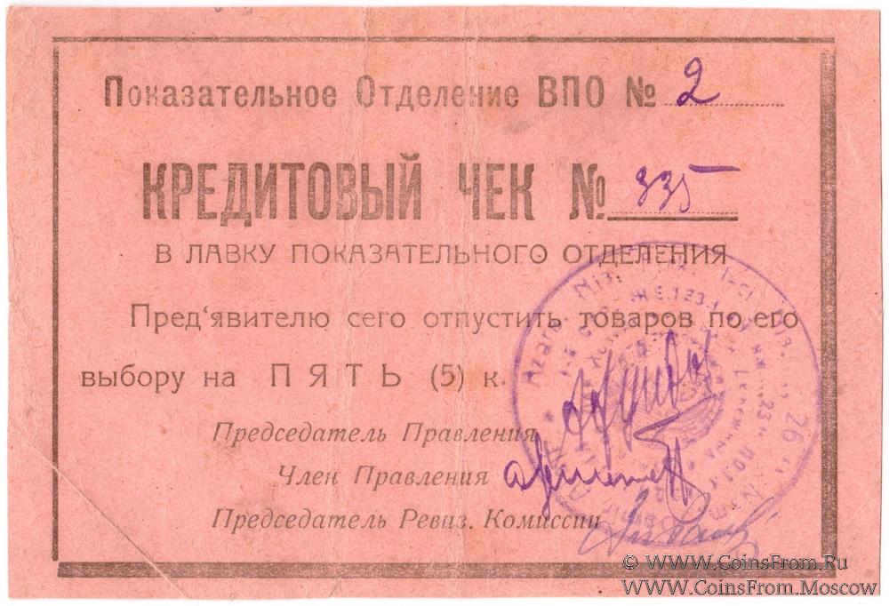 Кредитовый чек без даты. На реверсе 3 подписи. Показательное отделение В.П.О. 1-го стрелкового им. 26 комиссаров Азербайджанской дивизии.