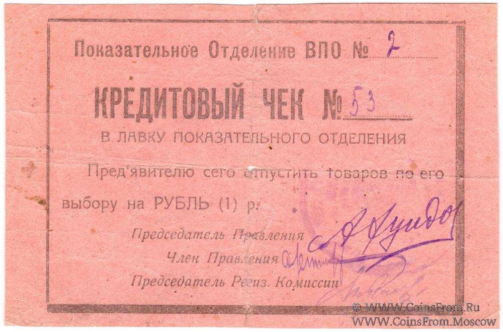 Кредитовый чек без даты. Показательное отделение В.П.О. 1-го стрелкового им. 26 комиссаров Азербайджанской дивизии.