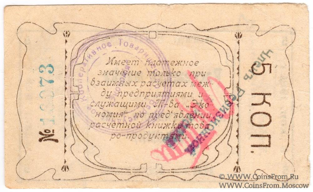 Печать на реверсе: "Верхнеудинское Кооперативное товарищество (по кругу) / "Экономия" (по центру)".