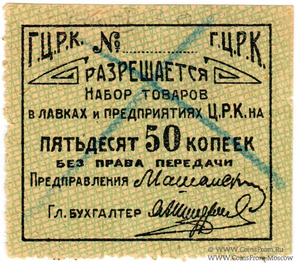 Без названия, без даты. Зеленый. Гомельский Центральный рабочий кооператив (Г.Ц.Р.К.).
