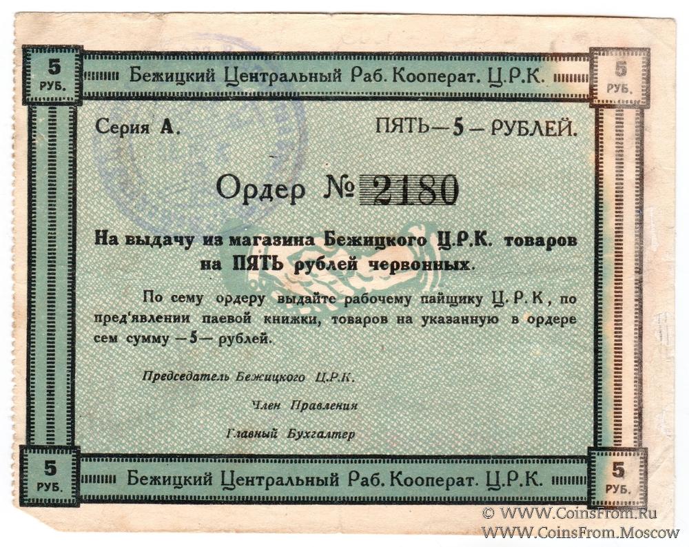 Ордер. Серия А. С печатью брянского завода на аверсе и реверсе. Бежицкий Центральный Рабочий Кооператив (Ц.Р.К.)