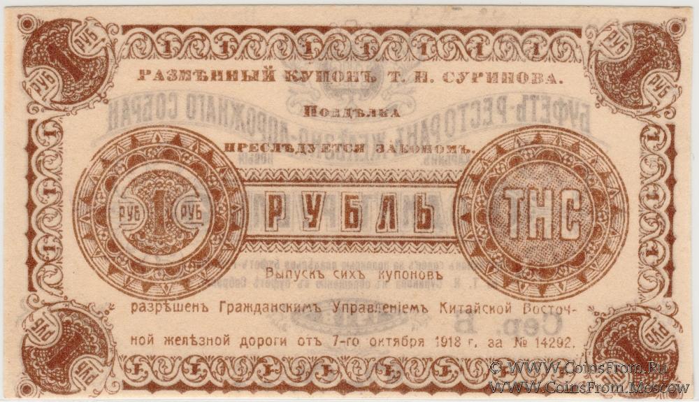 Выпуск купонов разрешен Гражданским Управлением Китайской Восточной железной дороги от 7 октября 1918 г. № 14292.