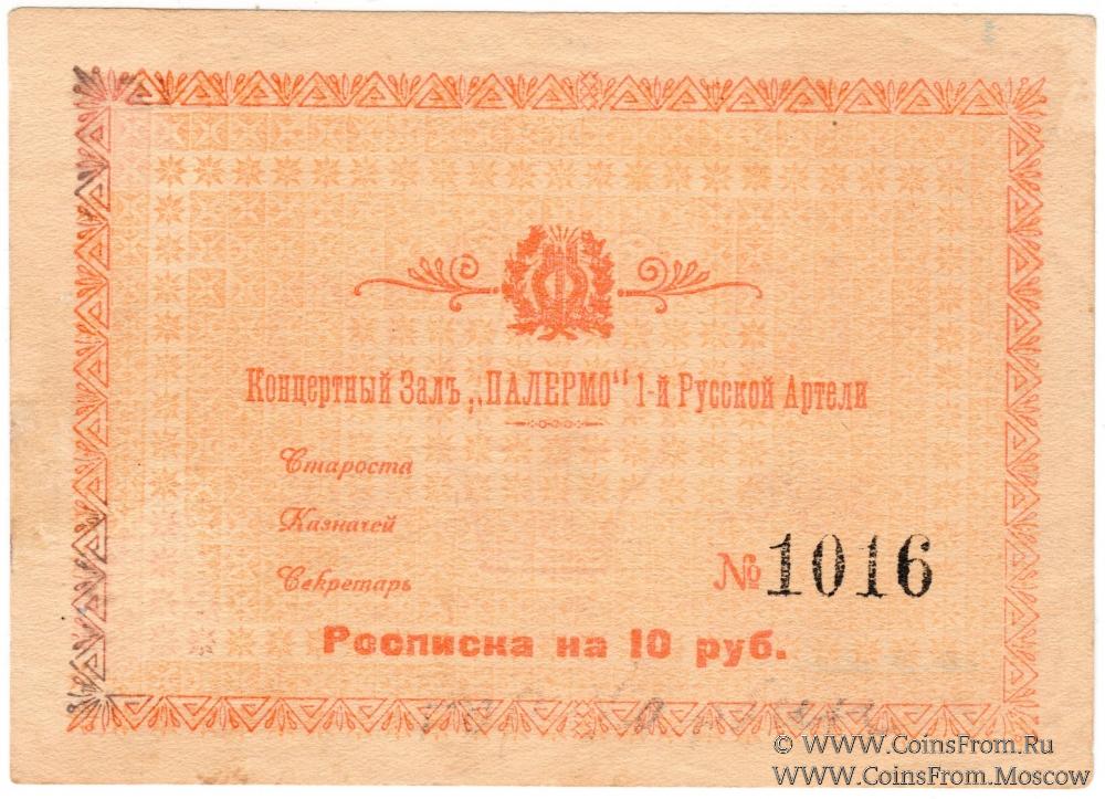 Расписка без даты. Бланк. Концертный зал "Палермо" 1-й Русской Артели.