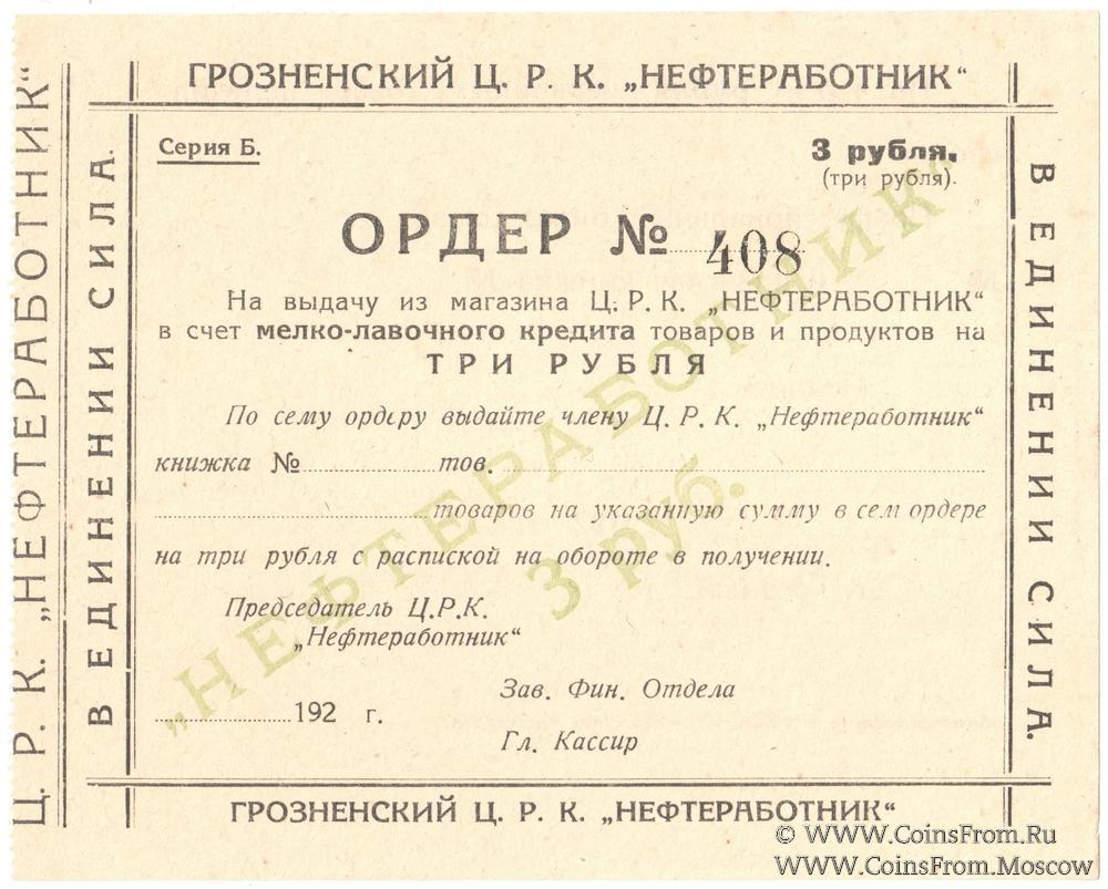 Ордер без даты (1923 г.). Грозненский Центральный Рабочий Кооператив "НЕФТЕРАБОТНИК".