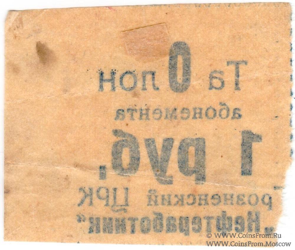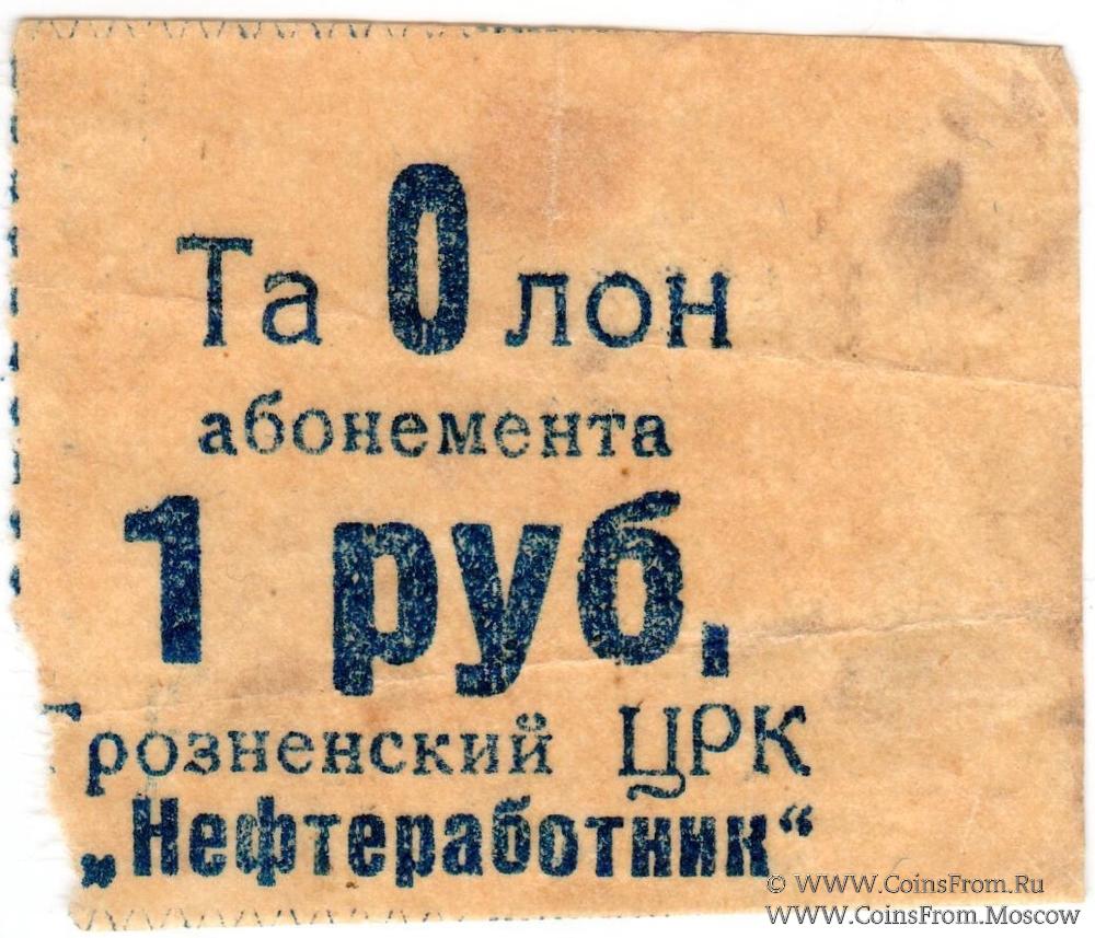 Талон абонемента без даты. Литера О. Синий текст. Грозненский Центральный Рабочий Кооператив "НЕФТЕРАБОТНИК".