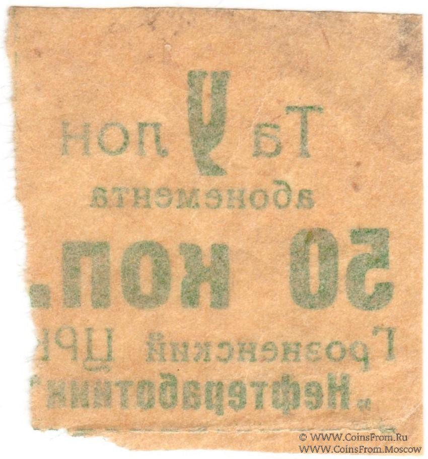 Талон абонемента без даты. Литера У. Зелёный текст. Грозненский Центральный Рабочий Кооператив "НЕФТЕРАБОТНИК".