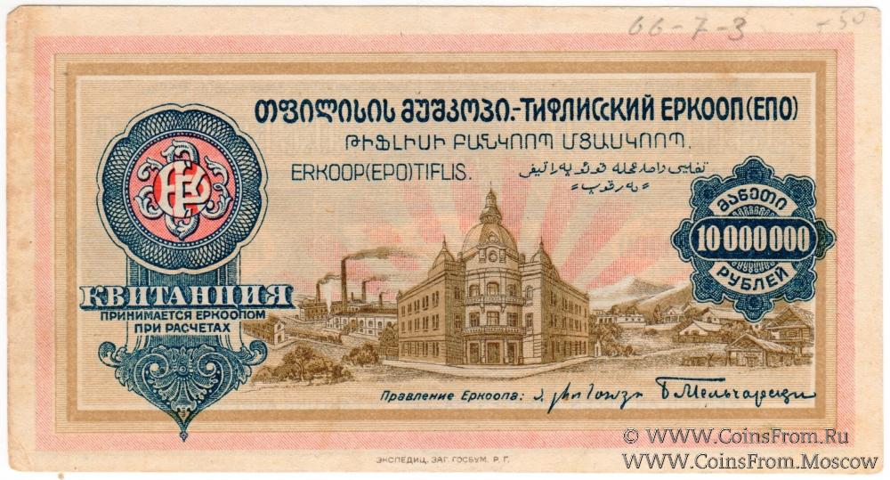 Квитанция без номера, без даты. Бланк. Тифлисский ЕРКООП (ЕПО).