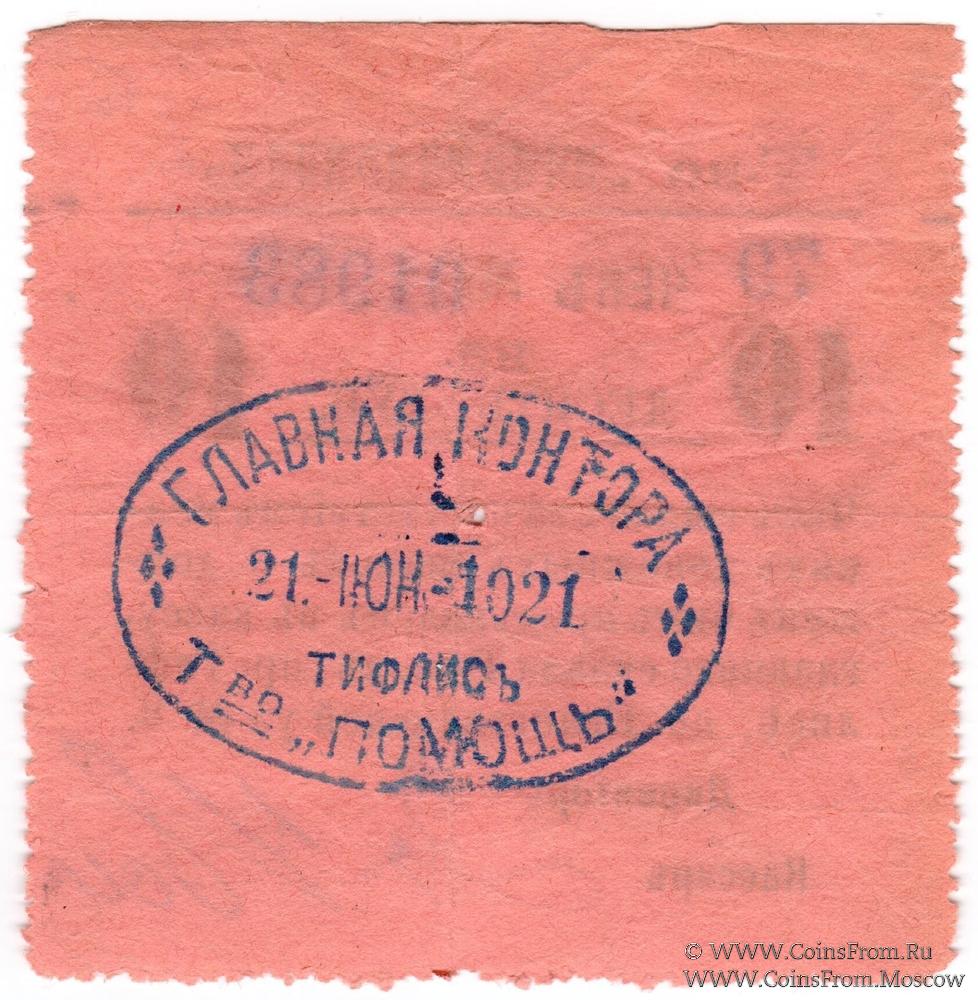 Чек. Товарищество "Помощь", г. Тифлис. Цифры номинала широкие. Буквы широкие. Реверс: овальная печать главной конторы Товарищества "Помощь".