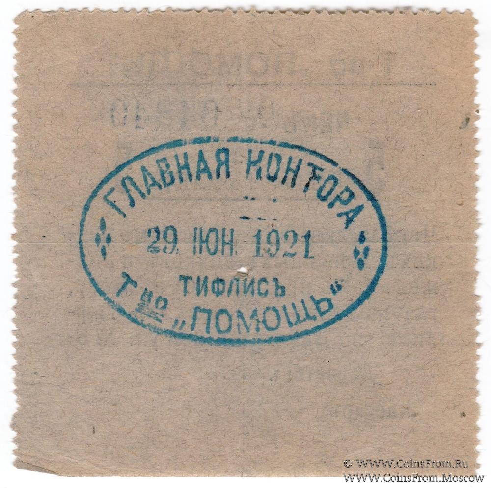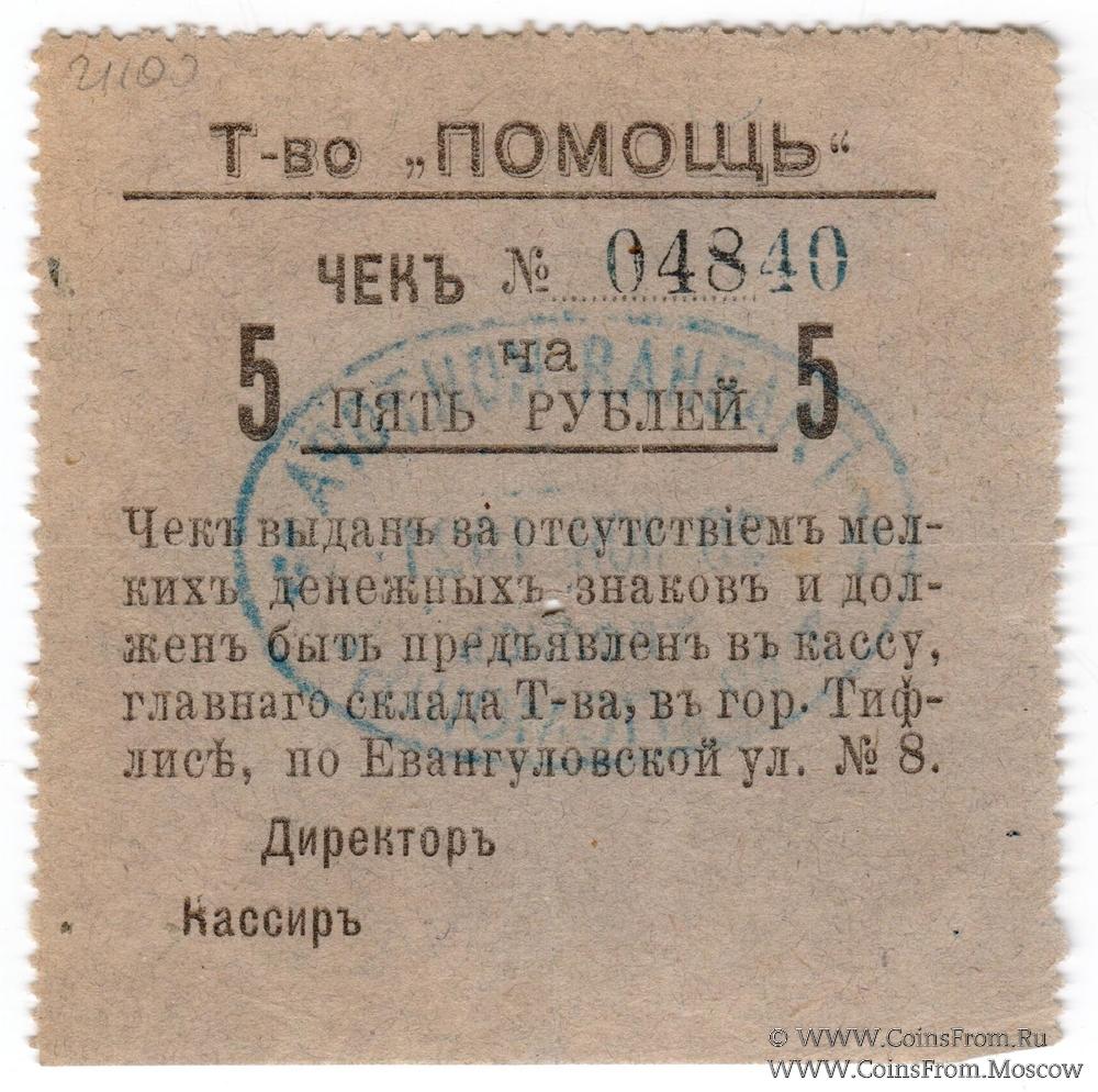 Чек. Товарищество "Помощь", г. Тифлис. Буквы узкие. Реверс: овальная печать главной конторы Товарищества "Помощь".