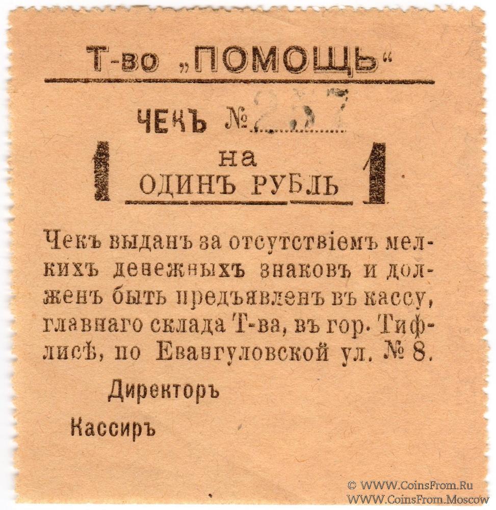 Чек. Бланк. Буквы узкие. Товарищество "Помощь", г. Тифлис.