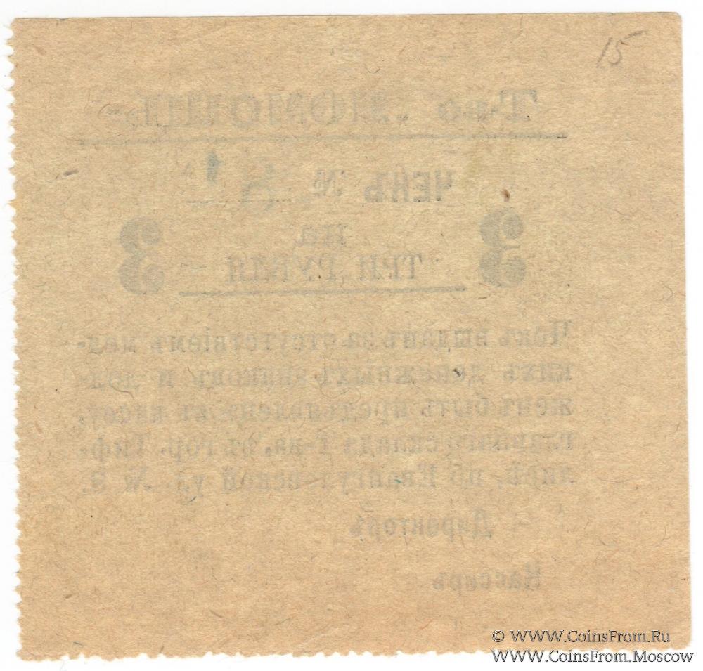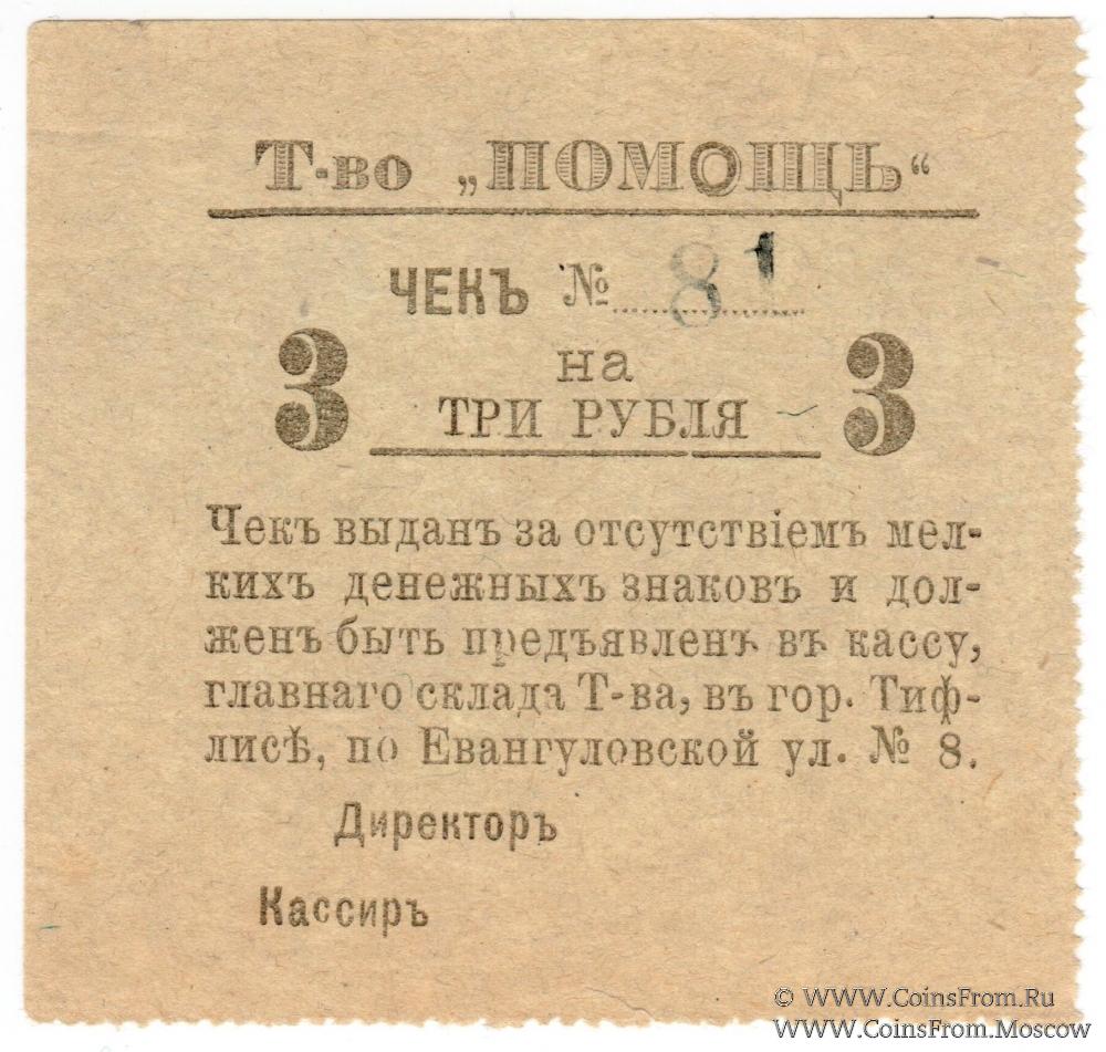 Чек. Бланк. Буквы широкие. Товарищество "Помощь", г. Тифлис.