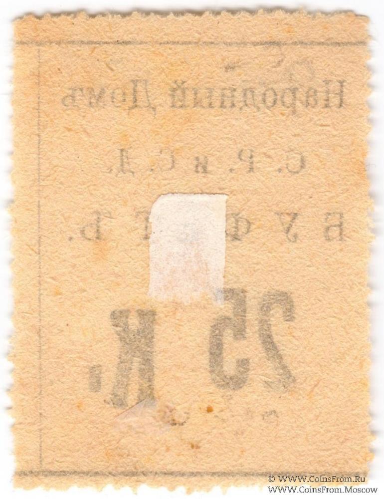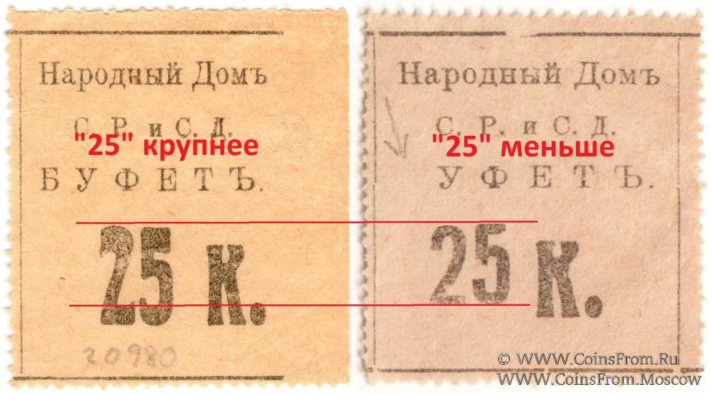 Цифры номинала "25" меньше (прямые). Народный Дом Совета Рабочих и Солдатских Депутатов (С.Р.и С.Д.). Буфет.