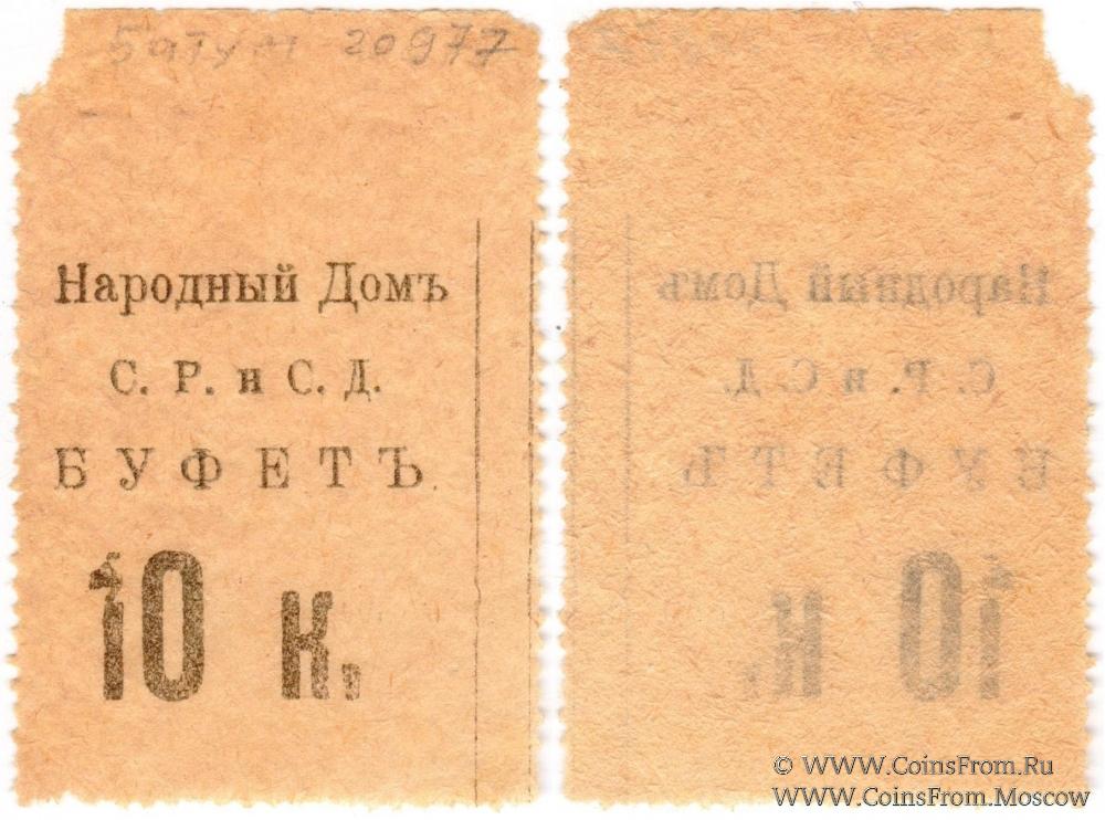 Цифра "1" в номинале "с носиком". Буква "К" малая, точка после "К" больше. Народный Дом Совета Рабочих и Солдатских Депутатов (С.Р.и С.Д.). Буфет.