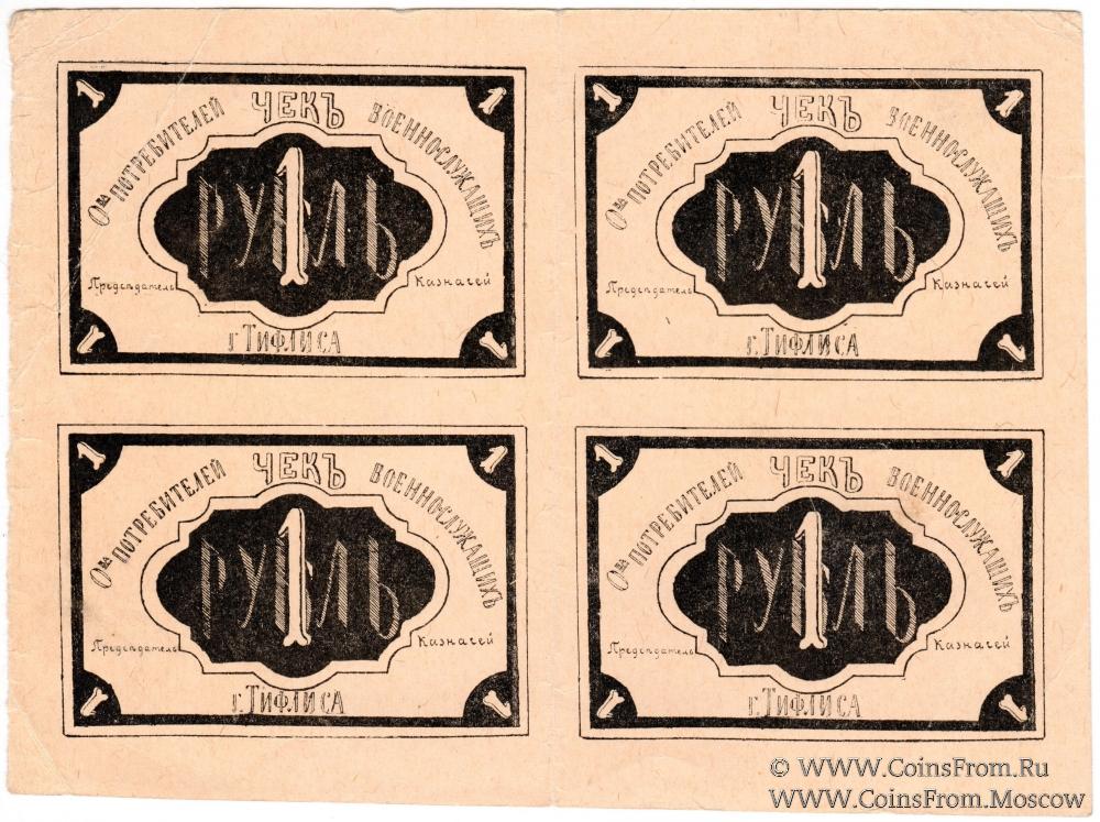 Чек без даты. СЦЕПКА из 4-х неразрезанных чеков. Общество потребителей военнослужащих.