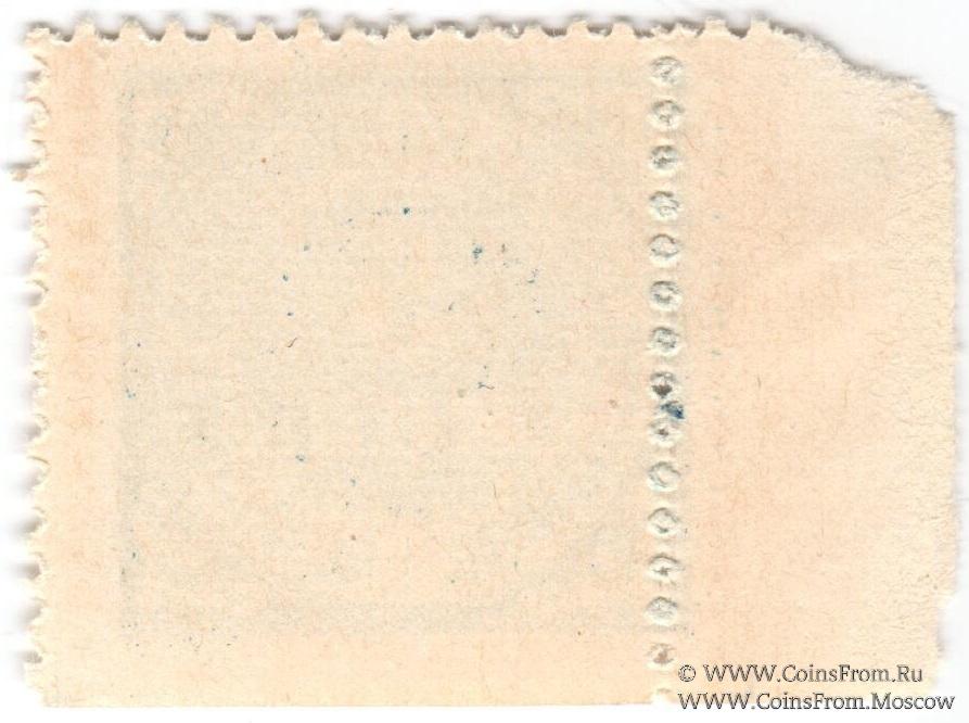Марка с зубцами без даты. БРАК: сдвиг фона (перфорация по фоновому рисунку). Отсутствуют зубцы снизу (край листа). Общество "Союз копейки" в Тифлисе.