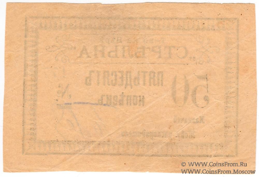Серо-желтая бумага. С подписью распорядителя. Товарищество на вере "Стрельна".
