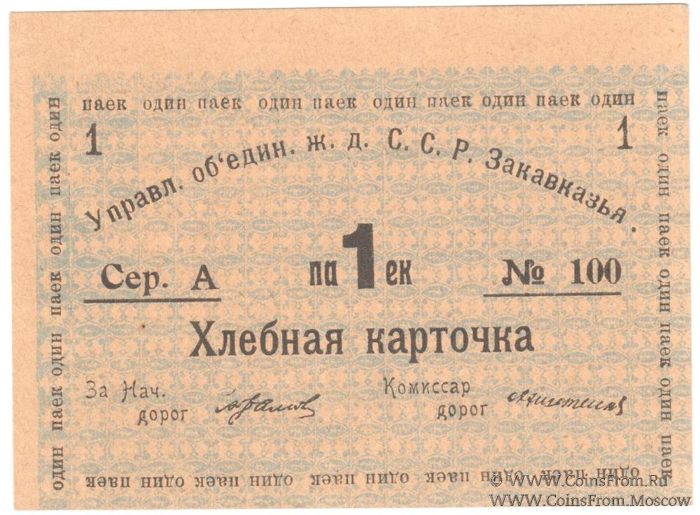 Хлебная карточка 1 паек б/д (Тифлис)