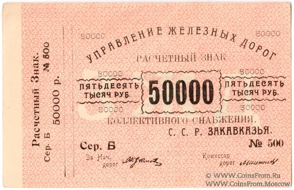 Расчетный знак коллективного снабжения без даты. Вариант 1 написания буквы "Я" и подписей. Управление железных дорог С.С.Р.Закавказья.