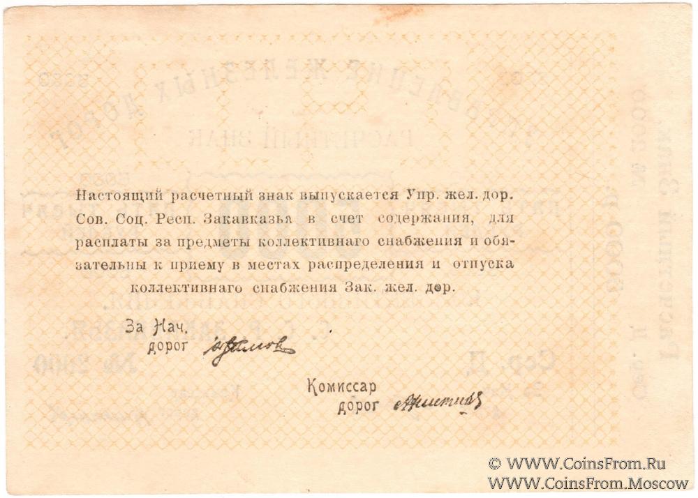 Расчетный знак коллективного снабжения без даты. Бумага белая. Вариант 1 написания буквы "Я" и подписей. Управление железных дорог С.С.Р.Закавказья.