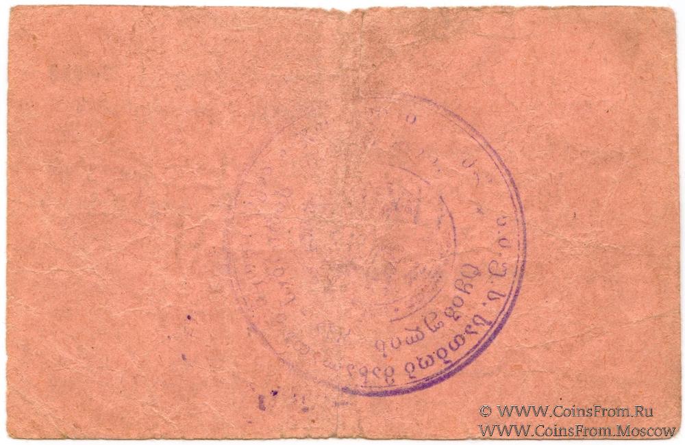 Чек 1924 г. На аверсе: текст на грузинском языке, без серии, номер рукописный 3-значный, подписи факсимиле (управляющий, главбух, кассир). Печать на реверсе.