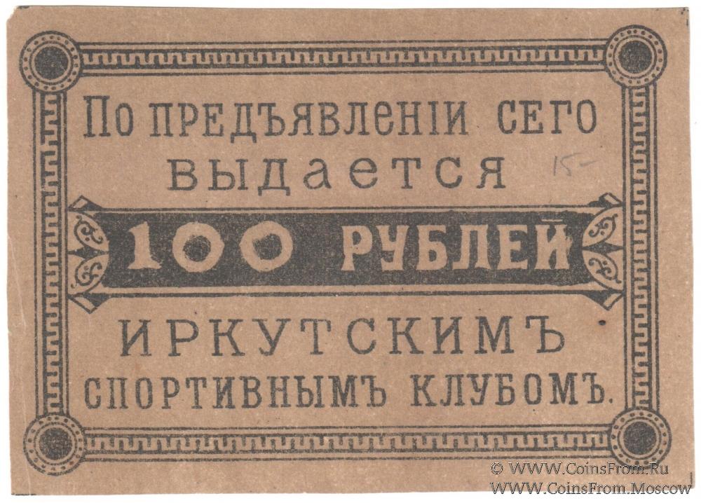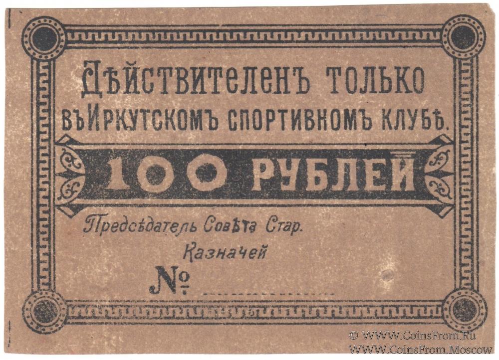 Без названия. Бланк без номера, без даты. Тёмный фон. "По предъявленiи сего...". Иркутский спортивный клуб.
