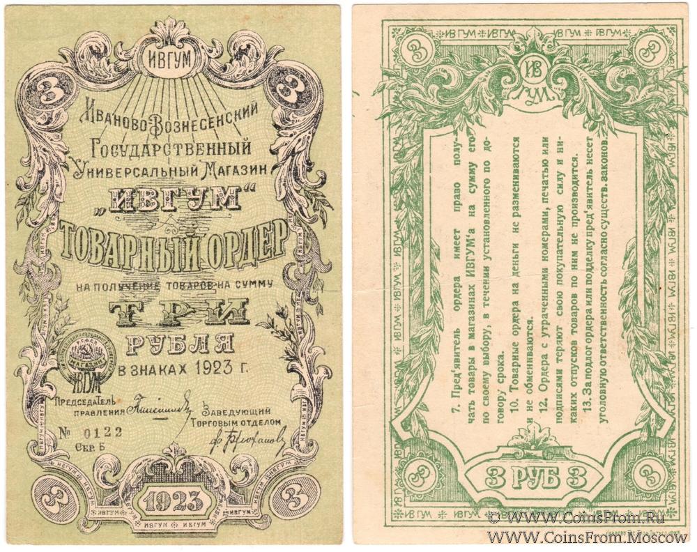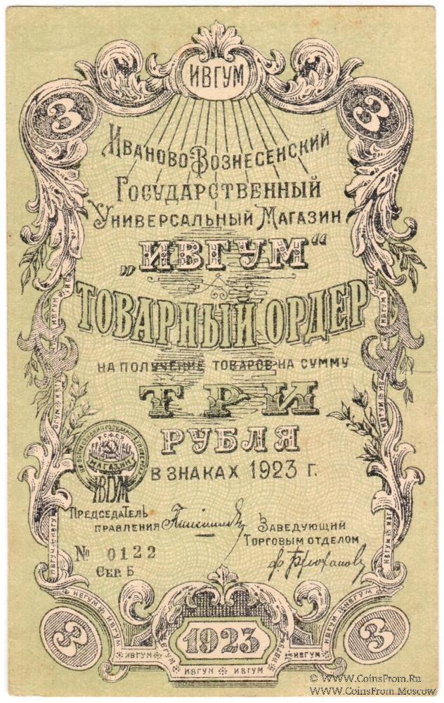 3 рубля 1923 г. (Иваново-Вознесенск)