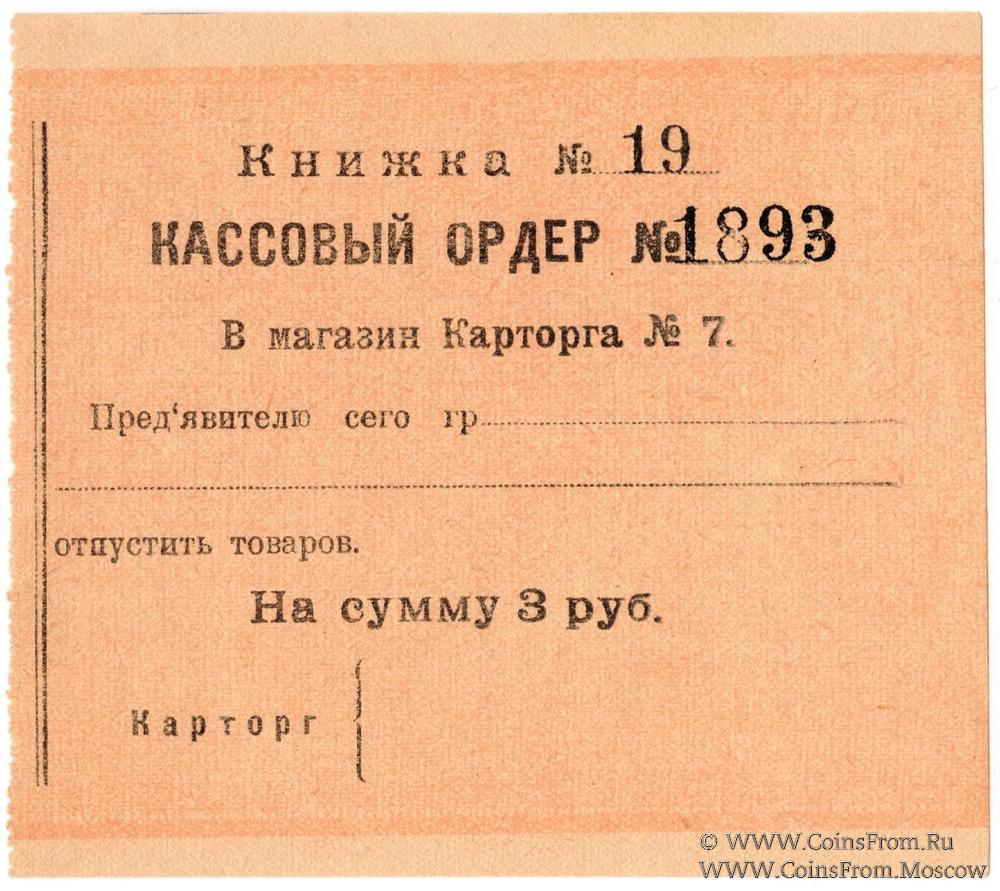 Кассовый ордер без даты. Книжка №19. Карторг №7.