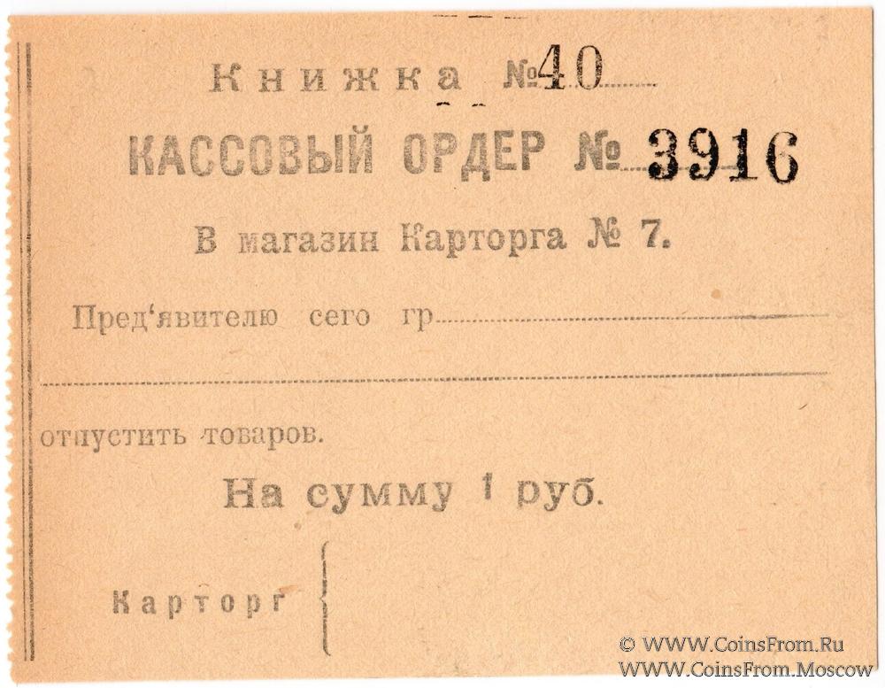 Кассовый ордер без даты. Книжка №40. Карторг №7.