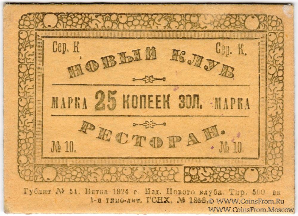 Марка золотом, на толстом картоне. Серия К. Новый клуб (ресторан).