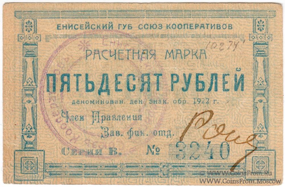 Расчетная марка. Отделение в Ачинске Енисейского Губернского Союза Кооперативов (Красноярск).