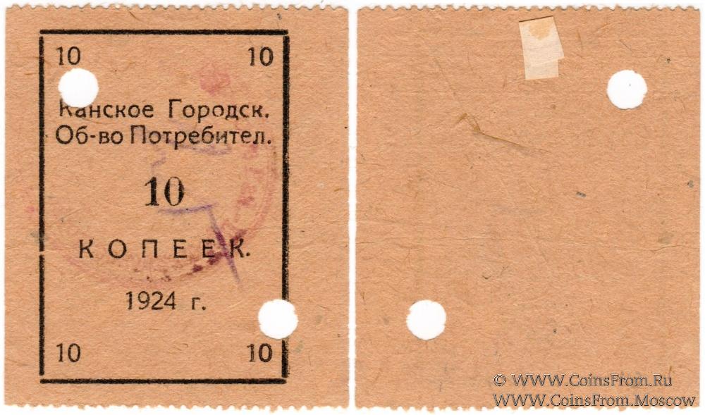Без названия 1924 г. На аверсе печать. Гашение (2 отверстия). Канское Городское Общество Потребителей.