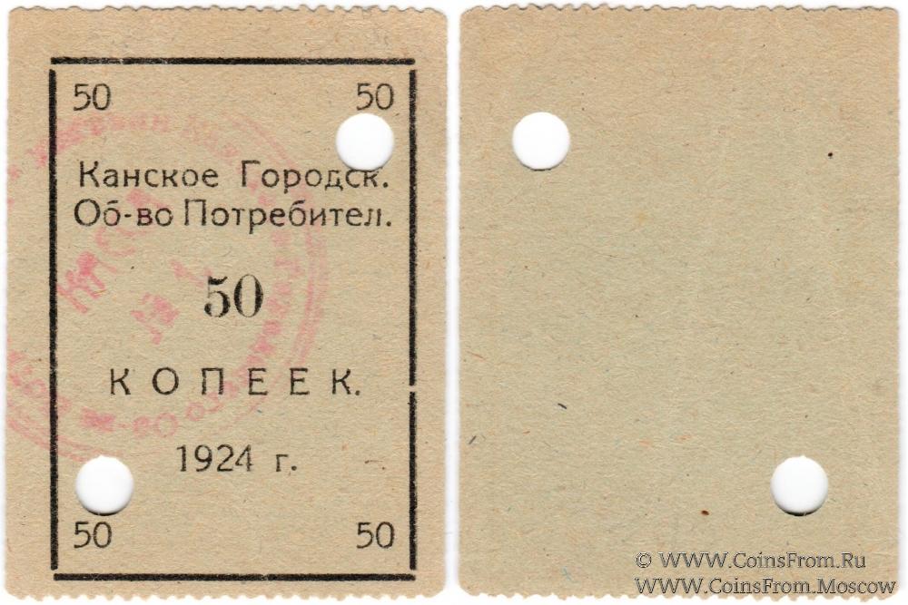 Печать круглая: "КАССА / № 1" (по центру в две строки) / "Канского Городского Общества Потребителей" (по кругу).