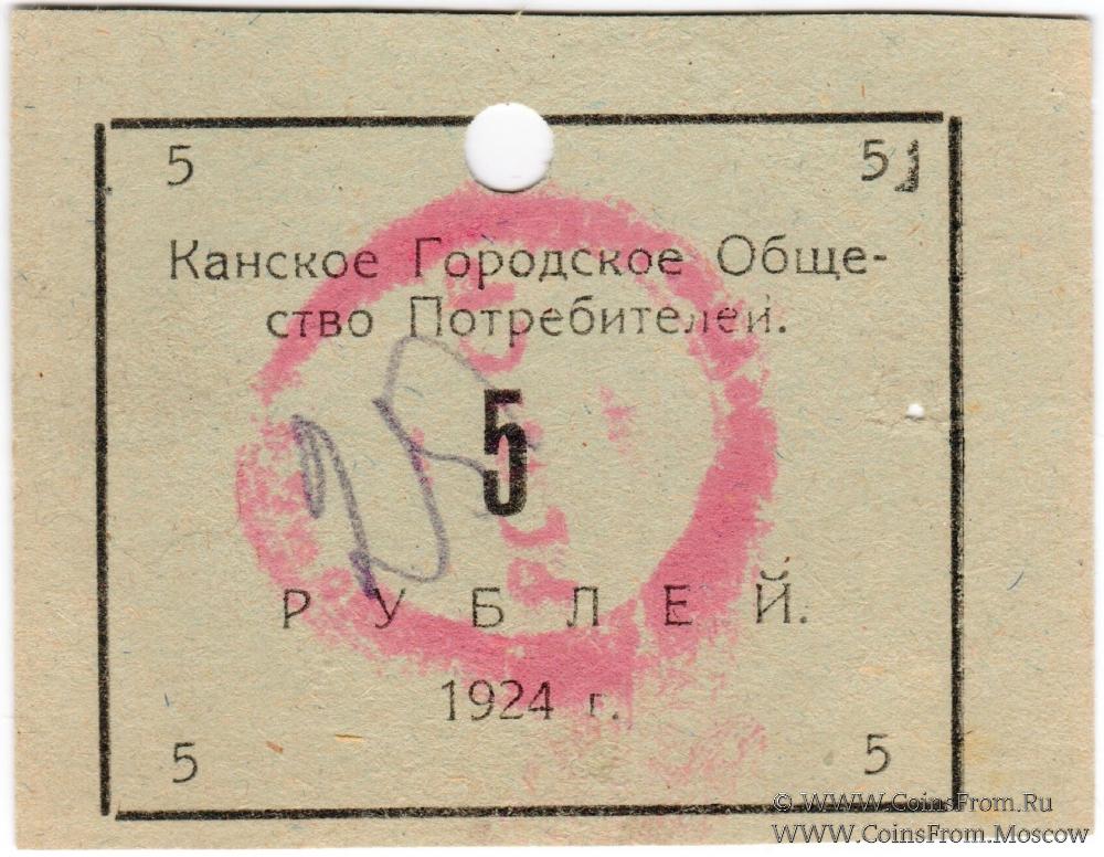 Без названия 1924 г. На аверсе печать "РСФСР". Гашение (1 отверстие). Канское Городское Общество Потребителей.