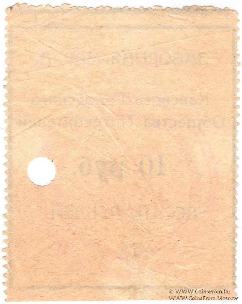 Заборная марка 1925 г. На аверсе печать: Касса № 2. Гашение. Канское Городское Общество Потребителей.