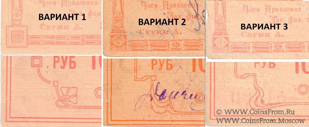 Варианты рамок расчетной марки 1922-1923 гг. разных номиналов (на примере 10 рублей). Енисейский Губернский Союз Кооперативов.