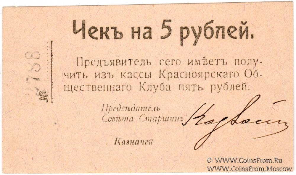 Чек без даты (1919 г.). Бланк. Красноярский общественный клуб.
