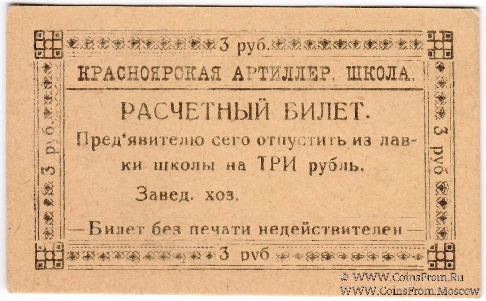 Расчетный билет без даты. Бланк. Красноярская Артиллерийская школа комсостава Р.К.К.А.