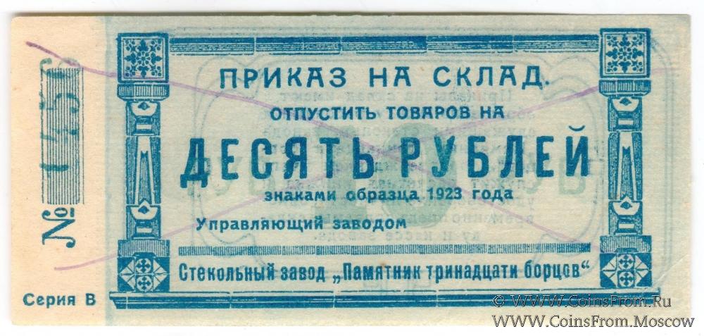 Приказ на склад. Вариант рамки 2. Цифры номинала прямые. Стекольный завод "Памятник 13 борцов".