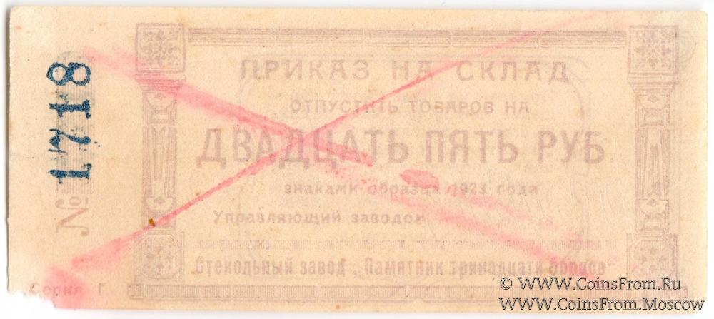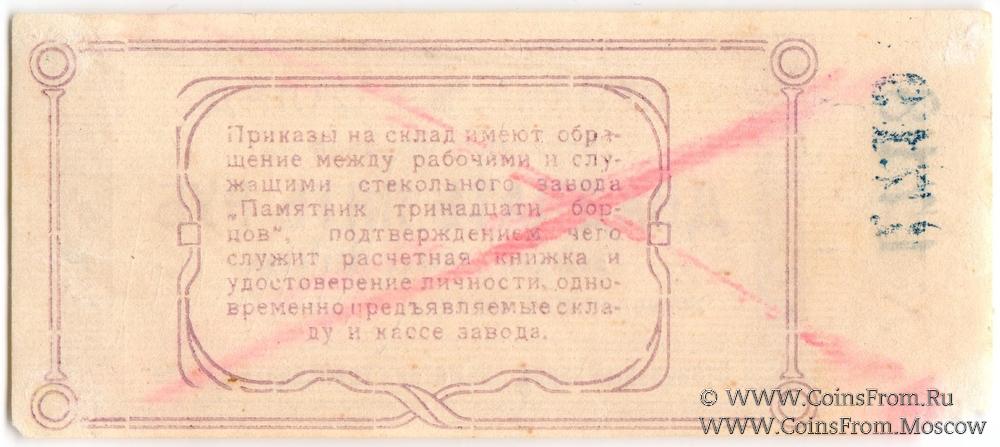 Приказ на склад. Цифры номинала наклонные. Стекольный завод "Памятник 13 борцов".