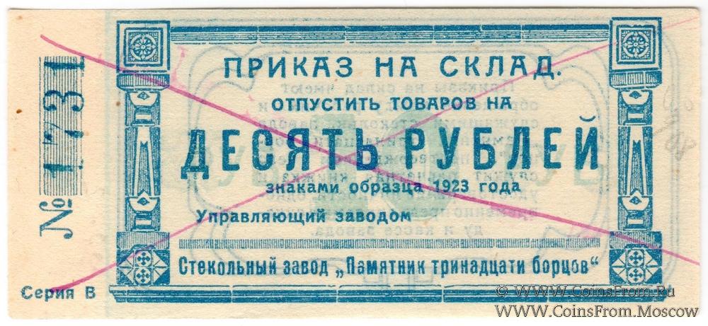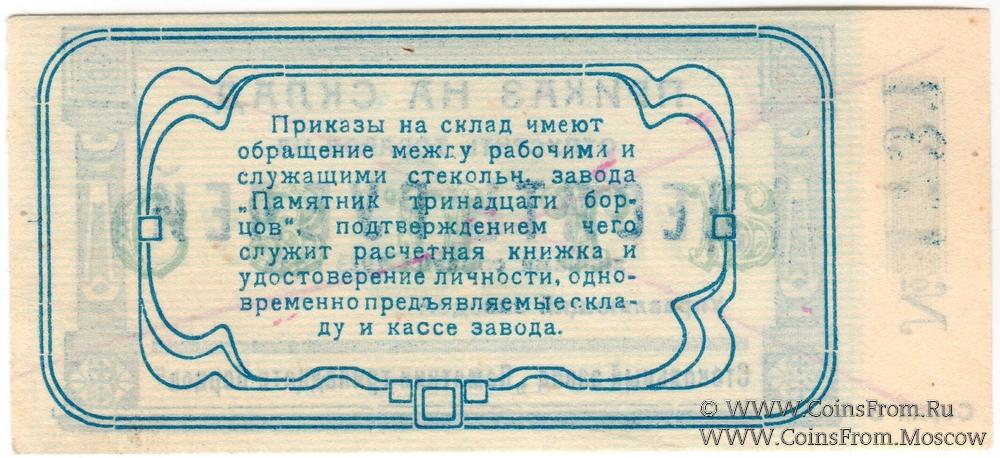 Приказ на склад. Вариант рамки 1. Цифры номинала прямые. Стекольный завод "Памятник 13 борцов".