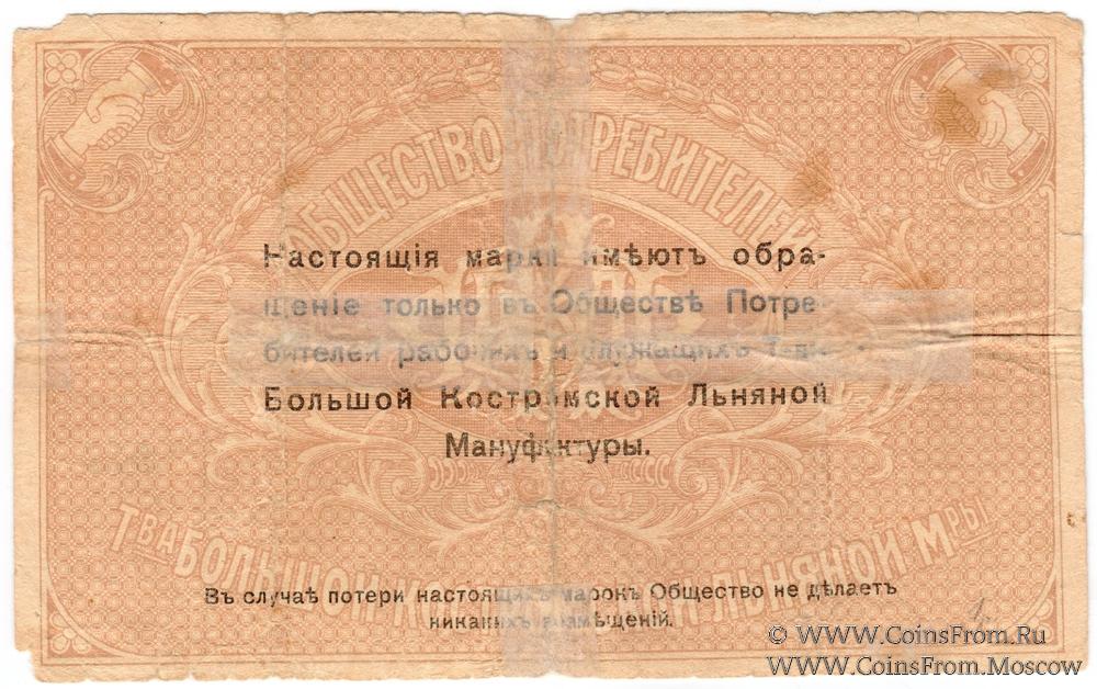 Марка без даты. Общество потребителей рабочих и служащих т-ва Большой Костромской льняной мануфактуры.